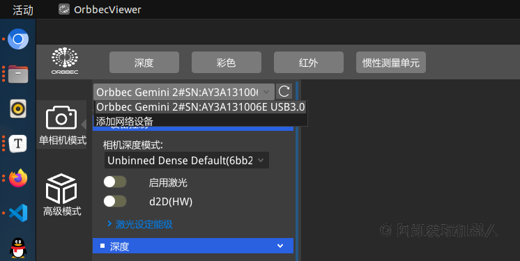 因此Gemini335在使用TypeC转 USB 3.0 公头信号转接线时,连接都需要注意正反。可以每个面都试一下,通过上位机看是否为 USB 3.0 的连接。