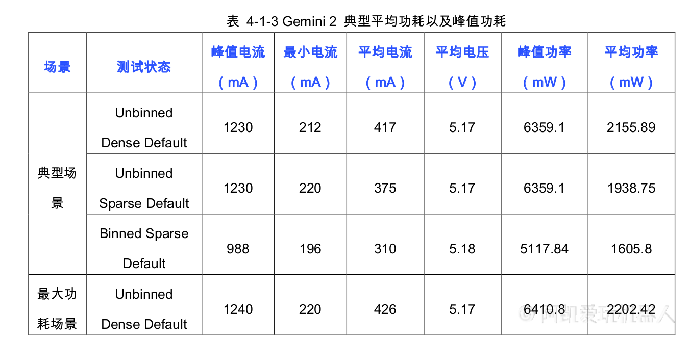 注:Gemini335产品规格手册中缺失了对电流与功耗的描述。