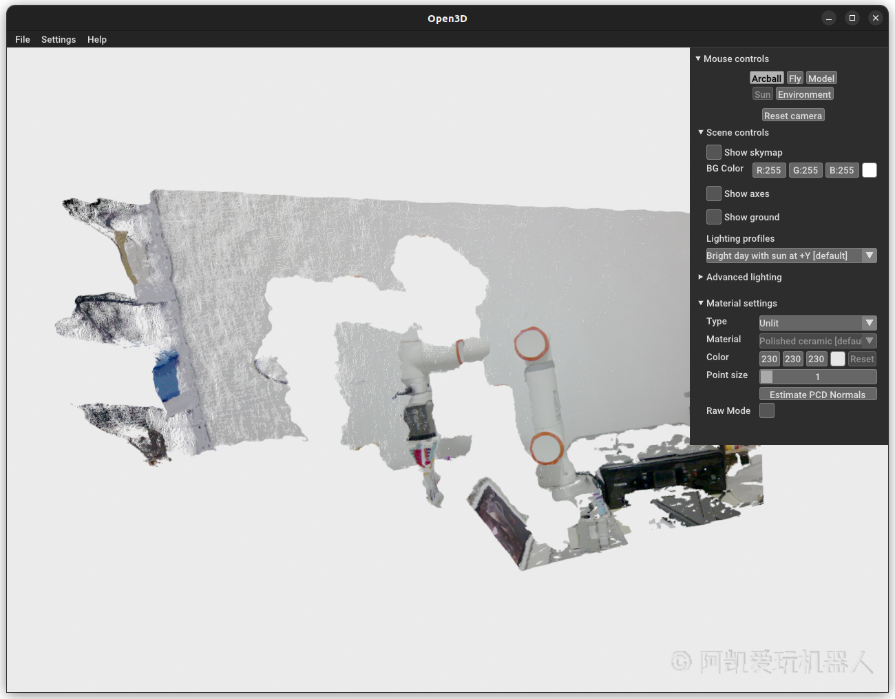 Open3D上支持更多的渲染方法与视角调整方式,比奥比自带的点云预览更方便。