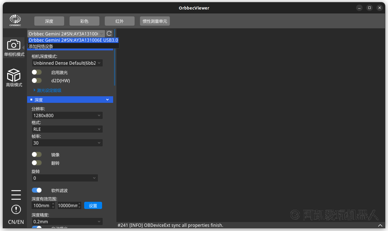 Orbbec Viewer是奥比中光的3D相机上位机,用于图像与点云预览以及相机调参。
